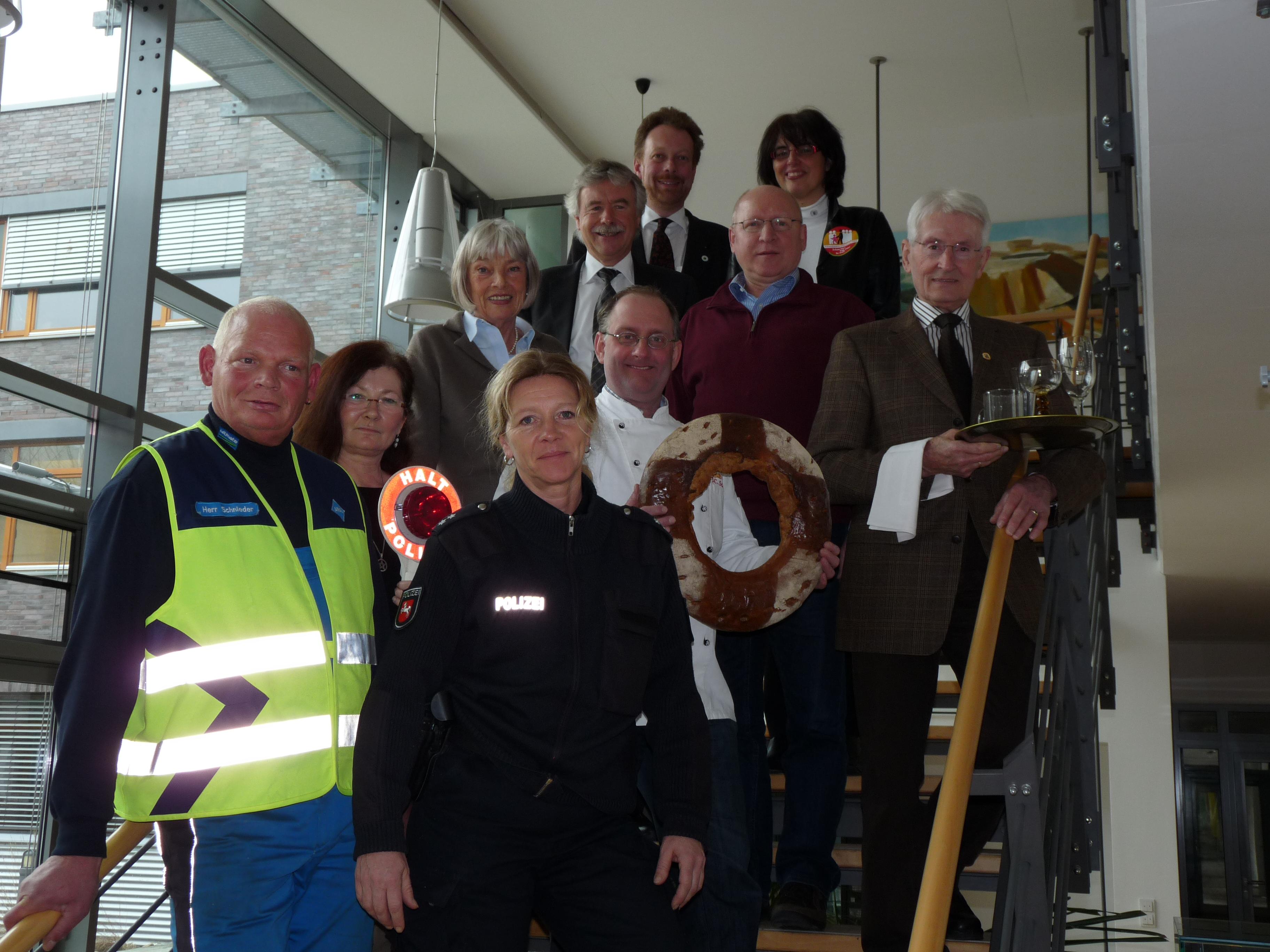 Margitta Kehmeier (Polizeiinspektion Oldenburg Stadt/ Ammerland), Jan Schröder (Stadtbäckerei und Ideengeber für das Projekt), Herr Schmiedens (in Vertretung für Uwe Vollertsen, Aral Tankstelle Westkreuz), Bianca Boyken (Polizeioberkommissarin).